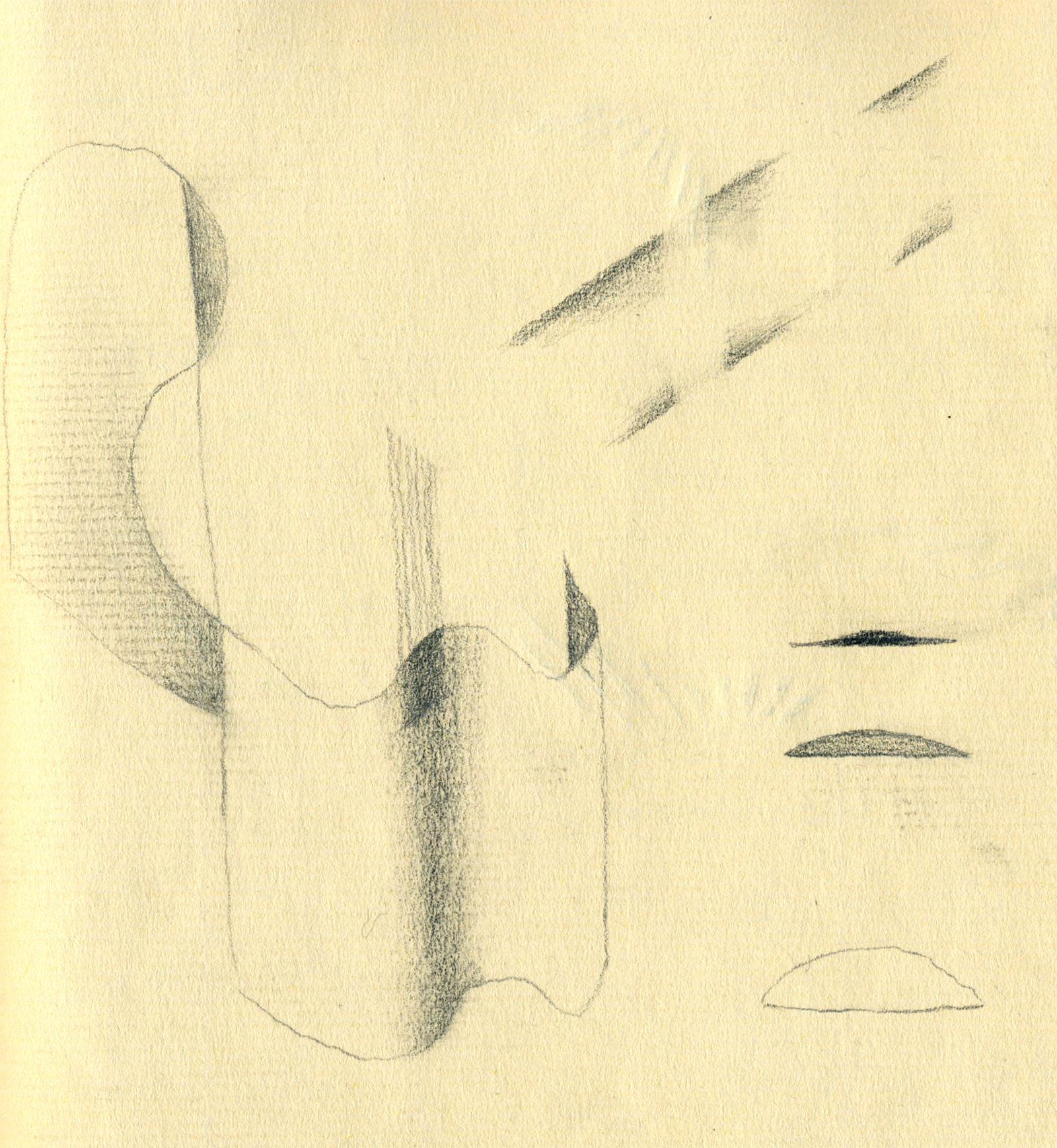 Through these personal, external and experiential fragments, I drew together inspiration to begin the next experimental phase of my creative process. In order to generate a new visual language, I played with simple prompts, creative parameters and exercises. Free-associative drawing, expressive mark-making and experimental techniques were the impetus for investigations in charcoal, graphite ink and water-based paint processes, masking techniques, salts on water colour pigments, photocopied distortions, toner and solvent transfers, paper collage and maquettes.